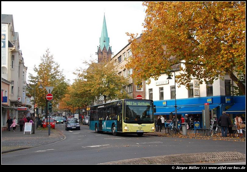 Herbststimmung am Niederrhein: In der Innenstadt von Viersen verlässt Wagen 36 der Niederrheinwerke am 06.11.2011 die Haltestelle "Gereonsplatz". Der Verkehrsbetrieb beteiligt sich ebenfalls an der Ausschreibung neuer Fahrzeuge im Rahmen der Kooperation "Mittlerer Niederrhein".