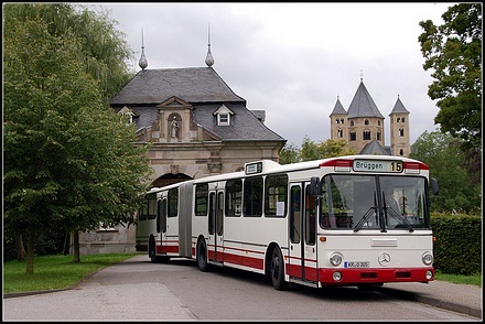 Bei diesem Fahrzeug handelt es sich um einen Mercedes-Benz O 305 G in Privathand zweier Busfreunde aus Krefeld. Im Rahmen einer Ausfahrt mit Gleichgesinnten wurde der Gelenkbus fotogerecht vor Kulisse des Kloster Knechtsteden bei Dormagen positioniert.