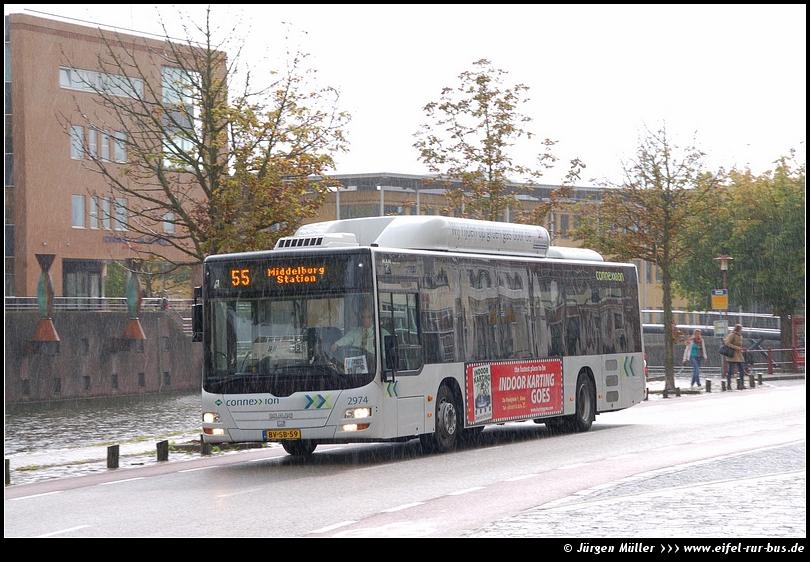 Der diesjährige Sommerurlaub des Webmasters an der niederländischen Küste bot neben Erholung auch abwechslungsreiche Fotomotive. Im verregneten Middelburg entstand dieses Foto von Connexxion-Wagen 2974 mit Erdgas-Antrieb [09.07.2011].