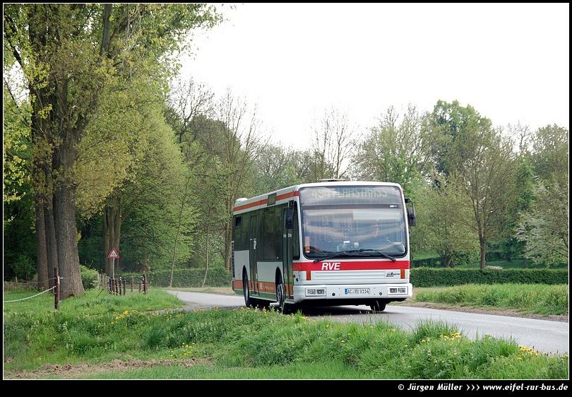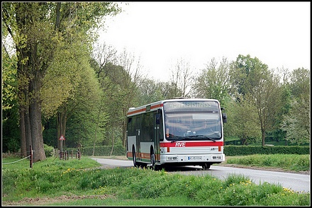 Kurz vor seiner Ausmusterung bildete Wagen 8114 der RVE (DB Bahn RheinlandBus) von seiner Farbgebung her ein Einzelstück im Fuhrpark, nachdem alle übrigen Fahrzeuge verkehrsrot umlackiert worden waren. In frühlingshafter Atmosphäre konnte der DenOudsten B96 am 21.04.2011 im Einsatz auf der Linie 494 zwischen Beeck und Leiffarth bei Geilenkirchen aufgenommen werden.
