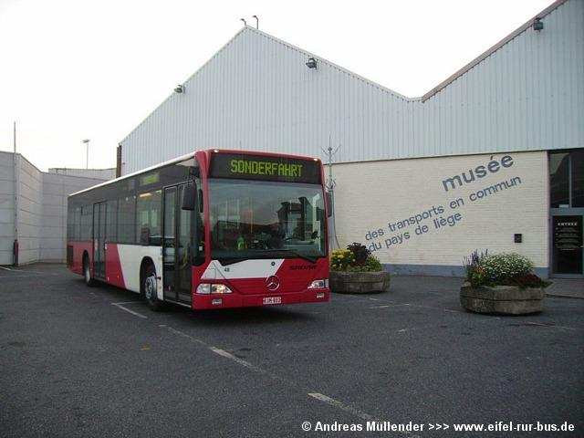 Die Fotos von Andreas Müllender aus Hauset (B) zeigen den SADAR-Citaro auf der Hin- bzw. Rückfahrt von und nach Eupen/Lüttich morgens am Verkehrsmuseum in Lüttich und an der Endstelle Guillemins der Linie 1 sowie abends auf einem Rastplatz entlang der Autobahn A 44 (Fotos 3 - 5): |