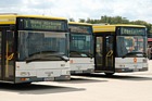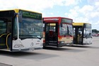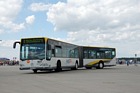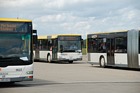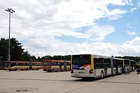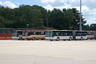 Während im hinteren Bereich der Haltestellenanlage die Fahrgäste ausstiegen, fuhren bereits die nächsten Busse zur Abfahrthaltestelle vor, wie hier Wagen 0024 zum Einsatz auf Route 1... |