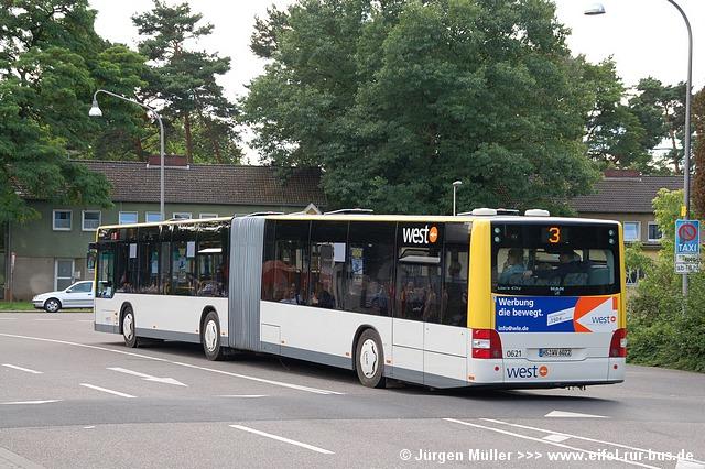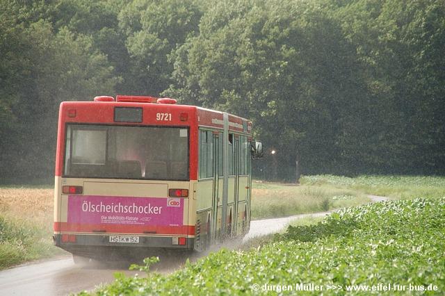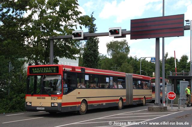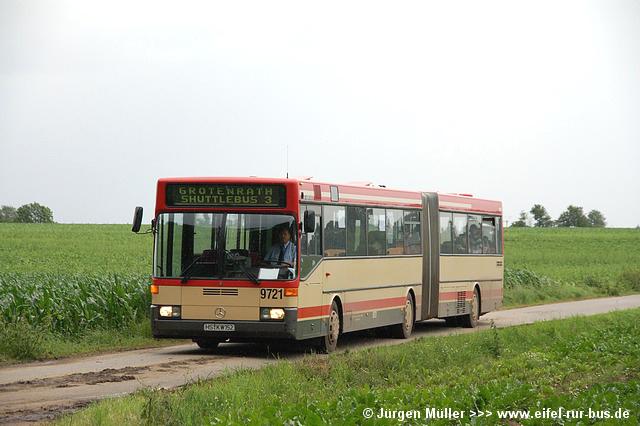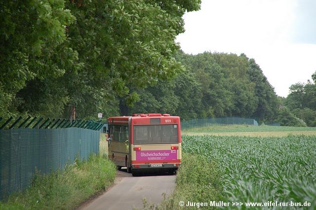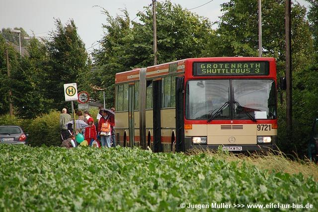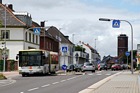 An beiden Tagen wurden fast alle regulären Erkelenzer und Geilenkirchener Dienste mit Gelenkbussen bedient, um den erwarteten Fahrgastkapazitäten gerecht zu werden. Gelenkbus 0121 aus Erkelenz konnte im Einsatz auf der Linie SB 1 in Geilenkirchen auf Höhe des Amtsgerichtes im Bilde festgehalten werden... |