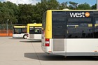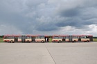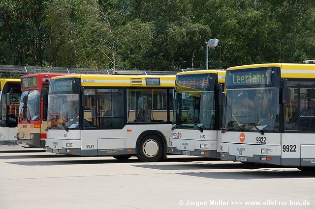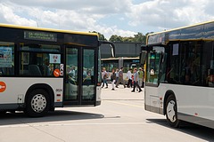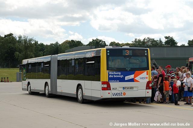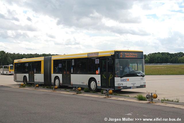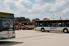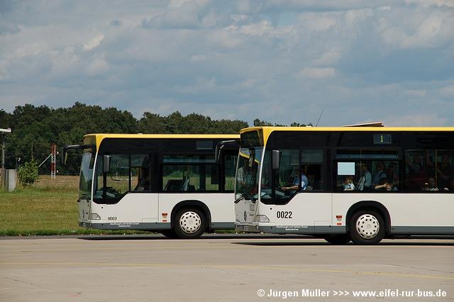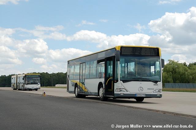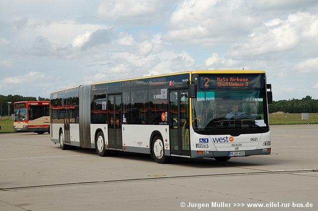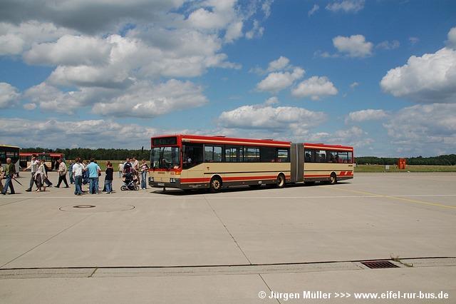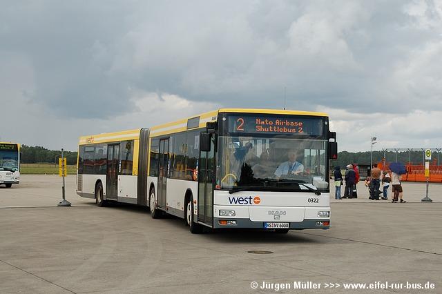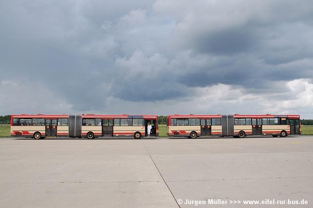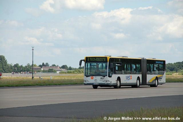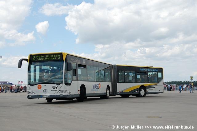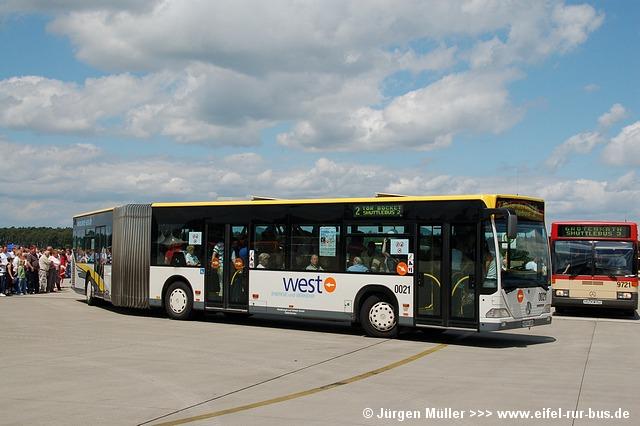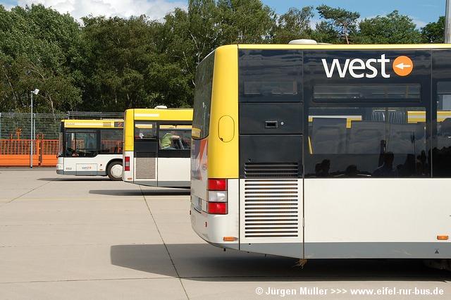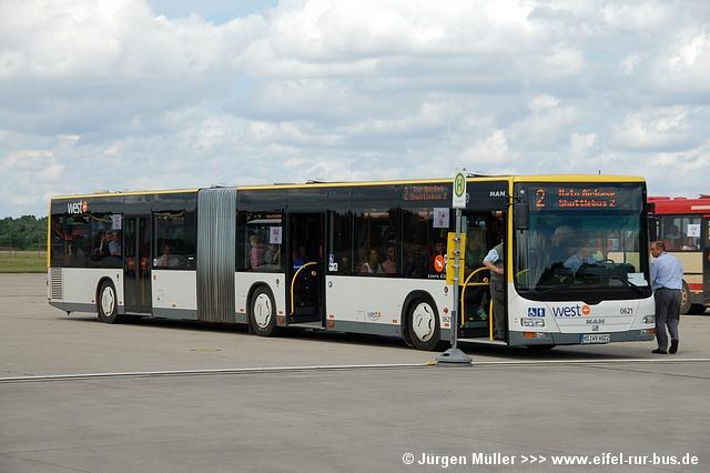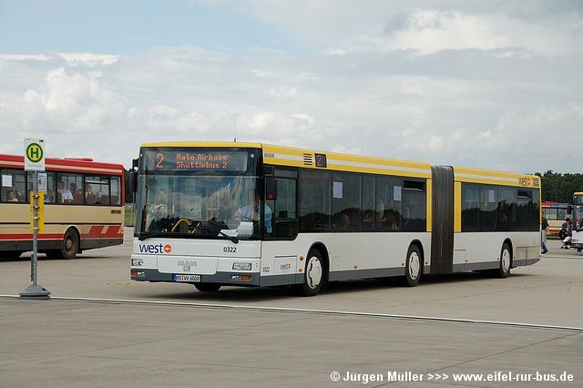Die folgenden Fotos entstanden ebenfalls im Rahmen der Jubiläumsfeier und zeigen neben "Gruppenaufnahmen" der Shuttlebusse weitere Fahrzeuge, die beispielsweise anlässlich Sonderfahrten zur Airbase fuhren. So konnten unter anderem je ein Bus von Knoben Reisen aus Heinsberg und von Taeter Aachen beobachtet werden. Der Wagen 0003 der west kam am Sonntag gegen Mittag an und wurde kurzerhand gegen den Reservebus 9123 getauscht.