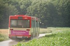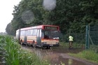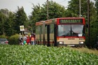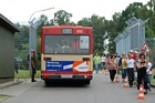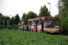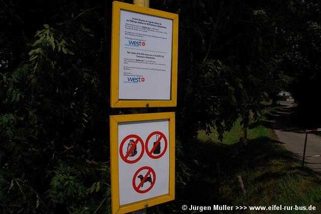 Auf den zweisprachigen Sonderfahrplänen wurde ausdrücklich auf das Mitführverbot von Rucksäcken und Haustieren auf dem Gelände hingewiesen. Das Gepäck konnte für die Dauer des Besuches im Wagen 9421 deponiert werden. Auch der Reservebus, Wagen 9123, stand am Rande des Veranstaltungsgeländes geparkt: |
