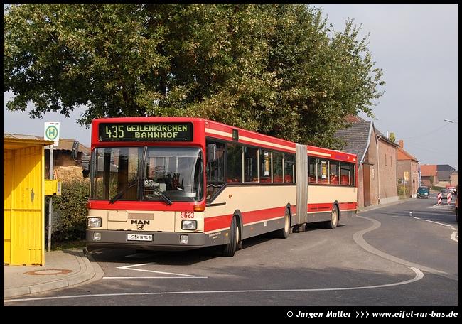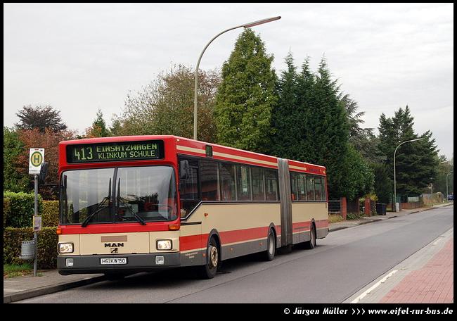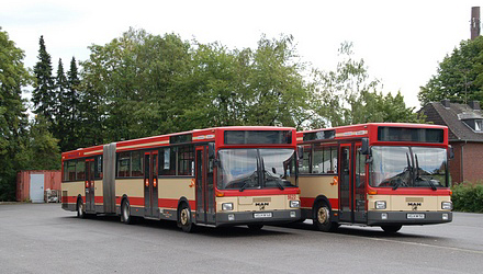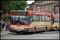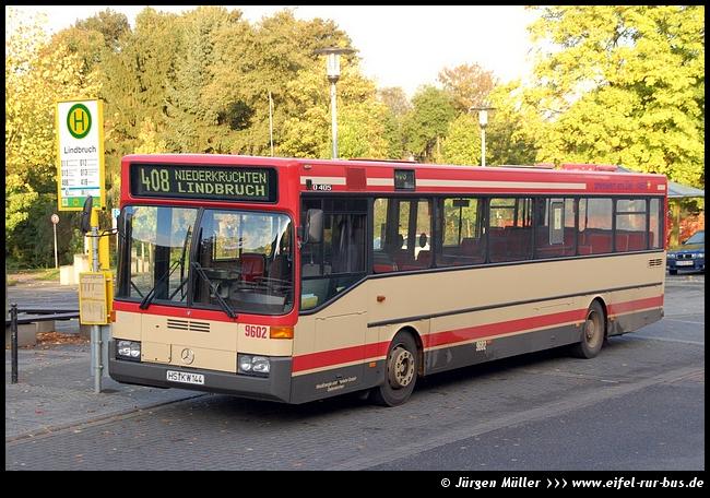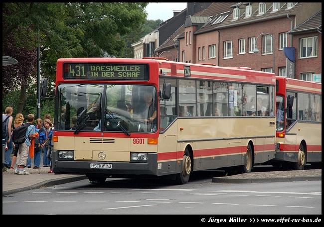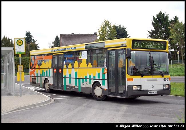 Im Jahr 1996 wurden je vier Solo- und Gelenkbusse in den Fuhrpark der KWH eingereiht. Während die Solo-Busse von EvoBus (in diesem Zeitraum durch den Zusammenschluss von Mercedes-Benz und Setra gegründet) geliefert wurden, kamen die Gelenkbusse von MAN. Die Mercedes-Benz O 405 waren die ersten Busse ihres Typs bei den Kreiswerken Heinsberg, die mit einem Automatikgetriebe ausgestattet waren. Verbunden mit der Umstellung auf Biodiesel wurde der Wagen 9604 in die neuen Unternehmensfarben umlackiert und entsprechend gestaltet. |