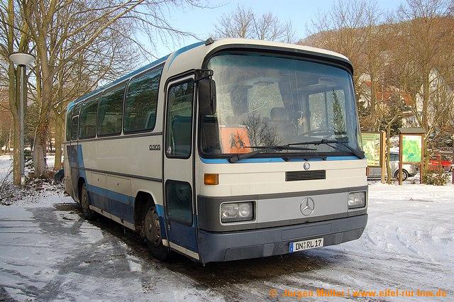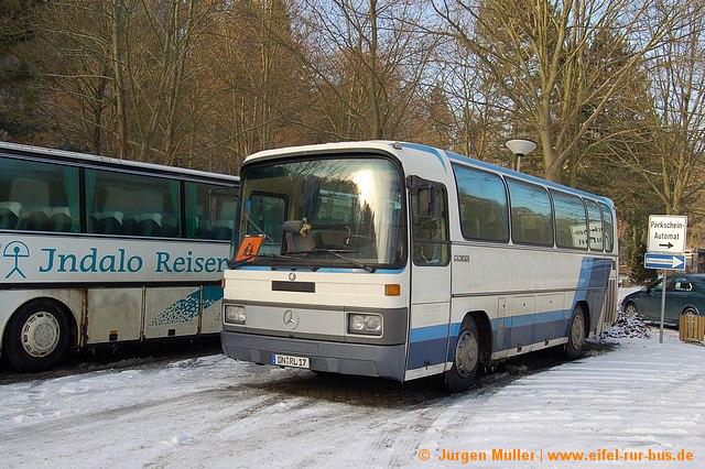 Die Heimbacher Firma Wergen ("Indalo-Reisen") hat einen Mercedes-Benz O 303-9 KHP neu im Bestand. Das auf DN-RL 17 zugelassene Fahrzeug war zuvor bei Colonia-Reisen in Hürth mit dem Kennzeichen BM-CR 756 im Einsatz. Die Fotos zeigen den Bus auf dem Rurparkplatz in Heimbach.