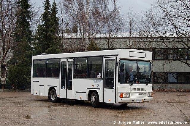 Neu im Fuhrpark des Roetgener Unternehmens Bustouristik Nordeifel ist ein blauer Setra S 315 GT, der kürzlich gebraucht beschafft wurde. Der Bus trägt das Kennzeichen AC-DN 268 und kommt im Auftragsverkehr der RVE auf den Eifel-Linien zum Einsatz.