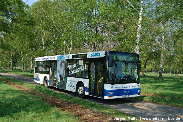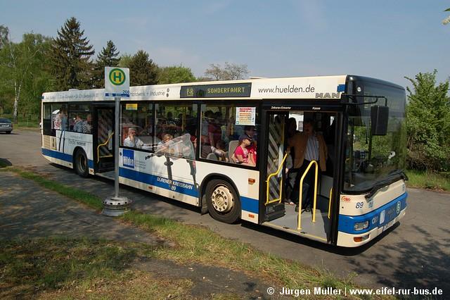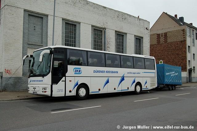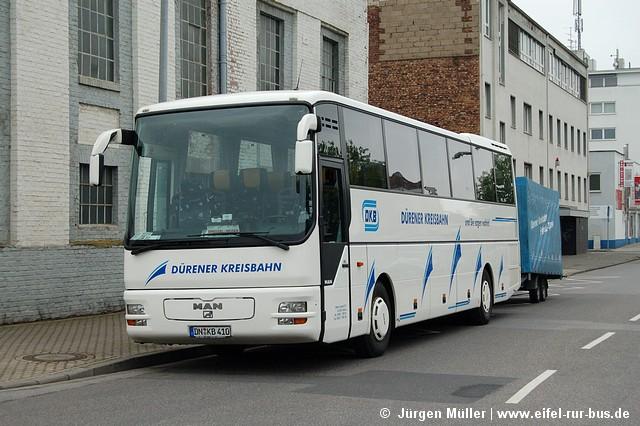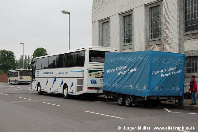 Im Mai startete die erste begleitete Fahrrad-Thementour der Dürener Kreisbahn. Dabei werden die Fahrräder und Radler mit einem Reisebus zum Startort der Tour gefahren und vom Endpunkt aus wieder mit dem Bus nach Düren gebracht. So können auch weiter entfernte Gebiete und Landschaften per Rad erkundet werden. Ausgangspunkt aller Touren ist der Annakirmesplatz in Düren, wo am 27.05. der Wagen 10 (MAN A 03) mit Fahrradanhänger zur ersten Tour bereitstand.
