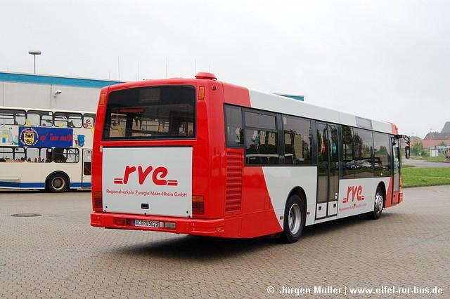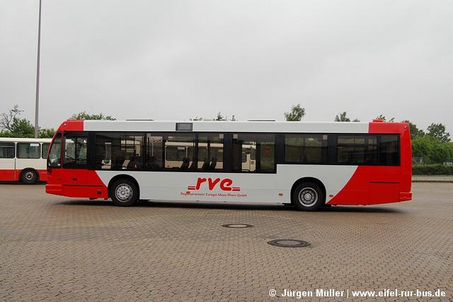 Nur wenige Wochen nach Entfernen der Real-Reklame, die der Wagen AC-RV 5023 (DenOudsten B96) bereits während seiner BVR-Zeit trug, wurde der Bus ins neue Design der Bahnbus-Nachfolgegesellschaften umlackiert. Damit ist er neben Wagen 5037 bereits der zweite DenOudsten und der sechste Bus der RVE im neuen Farbschema.