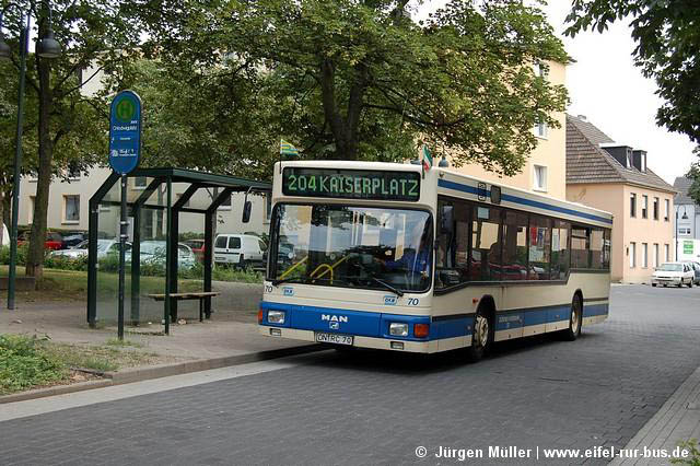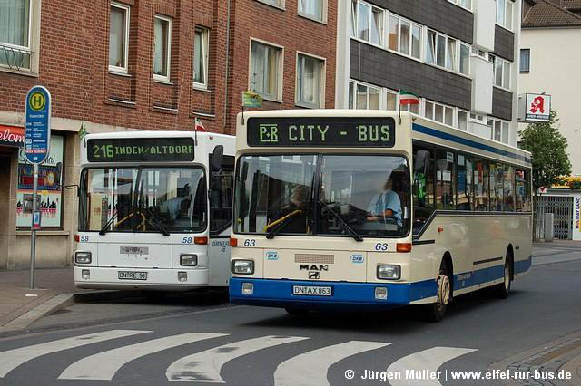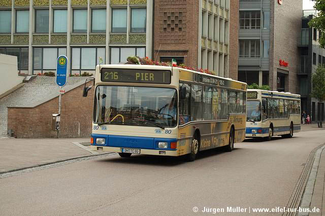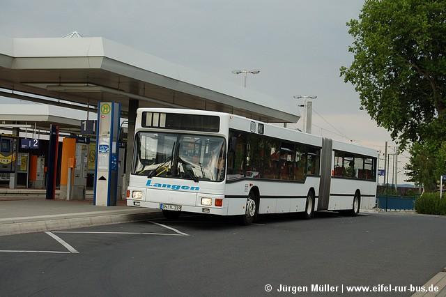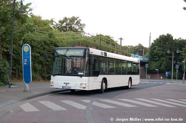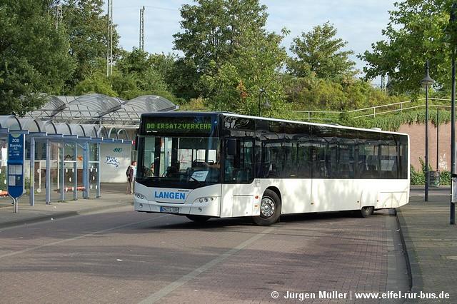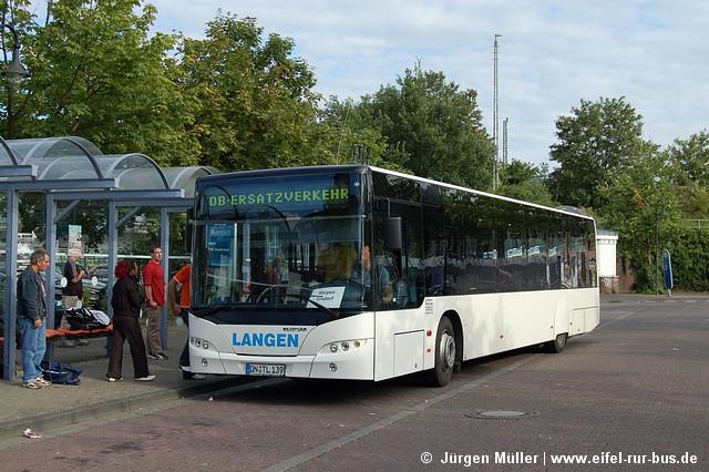 An den Wochenenden des 05. und 06. sowie 12. und 13.August wurde der Abschnitt Düren - Sindorf auf der S-Bahn S 12 durch Busse ersetzt. Der SEV mit Halt in Merzenich und Buir wurde von Langen Reisen aus Elsdorf gefahren. Die Fotos zeigen DN-TL 119 (MAN NG 272) und DN-TL 139 (Neoplan N 4516) in Buir und Düren.
