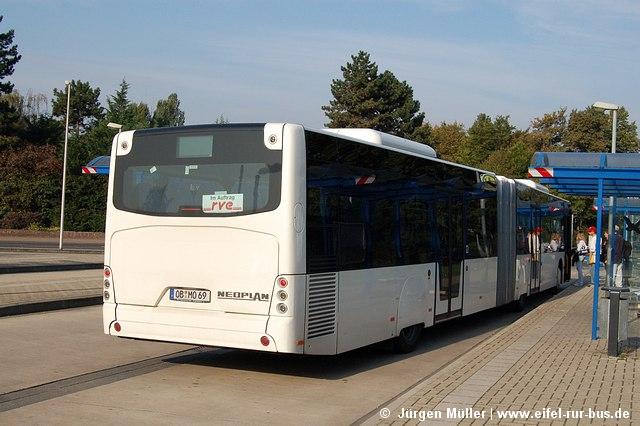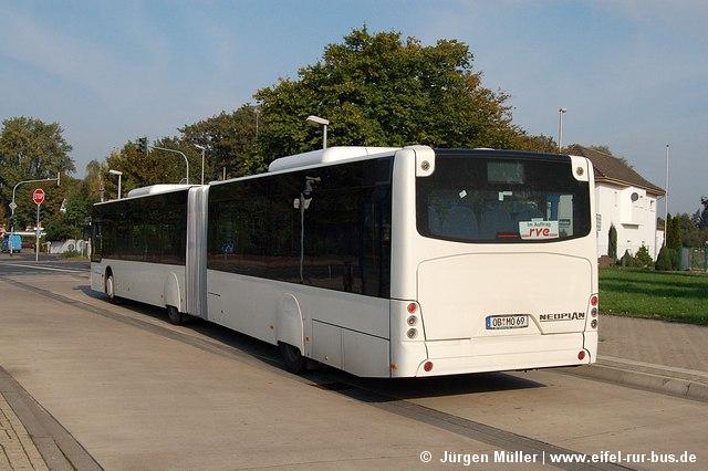 Während der Herbstferien war bei der RVE ein Vorführwagen des Typs Neoplan N 4522 zu Gast. Die nachfolgenden Fotos zeigen den komplett weißen Bus mit dem Kennzeichen OB-MO 69 im Linieneinsatz bei der RVE.