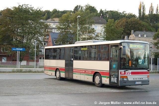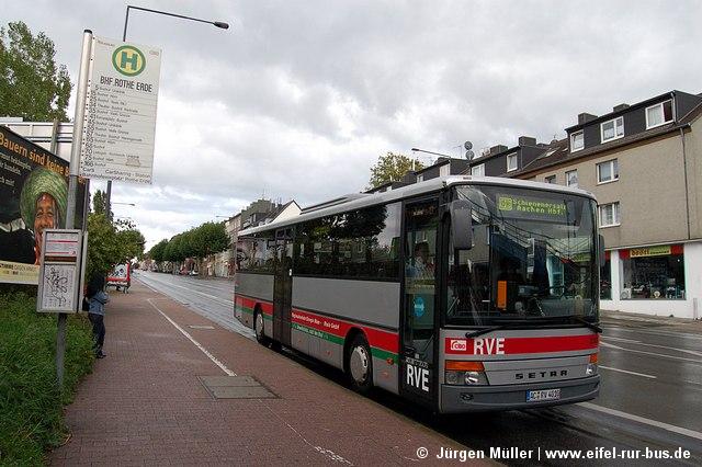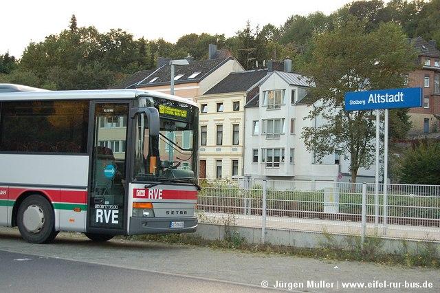 Von Samstag, den 30.09. bis Dienstag, den 03.10.2006 musste der Streckenast Stolberg Hbf. - Weisweiler der euregiobahn durch Busse ersetzt werden. Gefahren wurde der SEV von Lövenich-Reisen aus Niederzier im Auftrag der RVE. Am Sonntag, den 01.10. wurde auf dem Abschnitt Aachen Hbf. - Stolberg-Altstadt ebenfalls ein SEV durchgeführt, welcher von der RVE mit den Bussen AC-RV 4007 und 4010 gefahren wurde. Die Fotos von Jürgen Müller zeigen die eingesetzten Busse der Firma Lövenich und RVE im Einsatz.