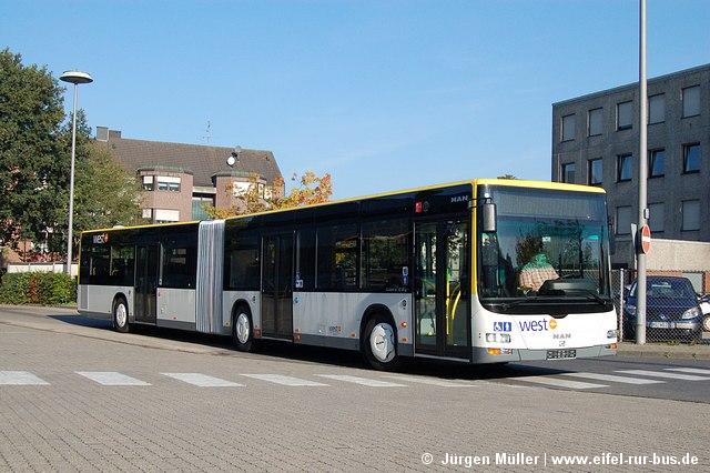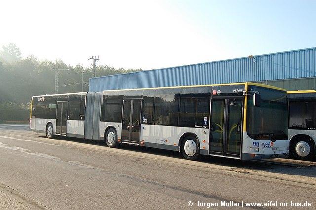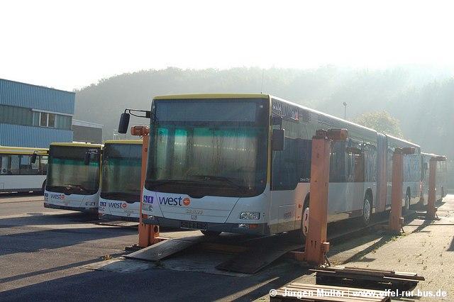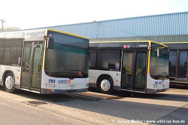 Auch bei der WestEnergie und Verkehr GmbH trafen im Oktober die Neuzugänge ein. Die Ausschreibung umfasst je zwei MAN Solo- und Gelenkbusse der neuen Generation (MAN Lion´s City). Diese konnten bereits am ersten Tag nach ihrer Ankunft noch ohne Kennzeichen im Betriebshof Geilenkirchen während der Aufrüstarbeiten fotografiert werden.