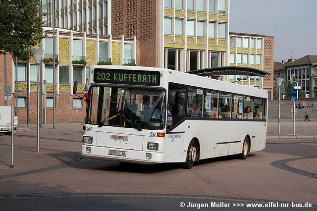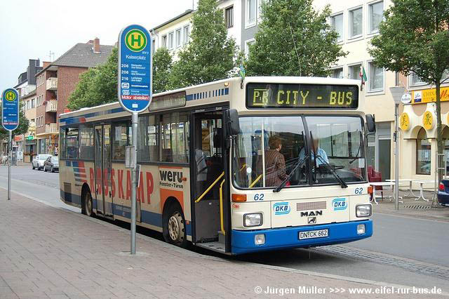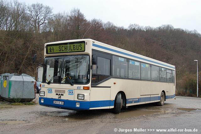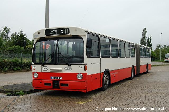 Als Ersatz für den ausgemusterten Wagen 65 (Fahrschuleinrichtung) wurde bereits vor über einem Jahr der Wagen 12 (MAN ÜL 313) mit einer solchen Ausstattung versehen. Nach wie vor im Einsatz sind die Wagen 60, 63 (MAN SL 202) und 98 (Mercedes-Benz O 305 G), welche vorwiegend zu Schülerspitzenzeiten beobachtet werden können. Die nachfolgenden Fotos zeigen die ausrangierten Fahrzeuge zu früheren Zeiten im Linieneinsatz und den ehemaligen KOM 96 als DN-L 606 bei Lövenich-Reisen.