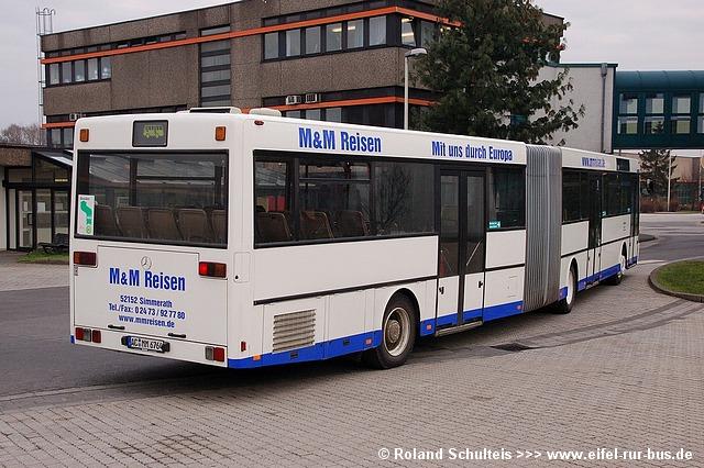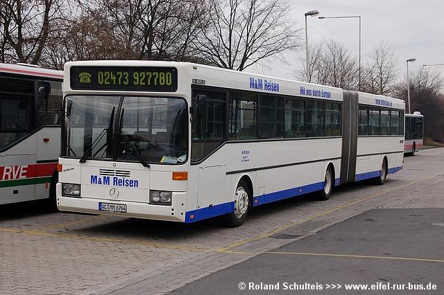 Die im Dezember 2006 gebraucht beschafften Mercedes-Benz O 405 G (AC-MM 6764) und der MAN NL 202 (AC-MM 6765) wurden zwischenzeitlich ins M&M Farbschema weiß mit blauem Streifen umlackiert und mit Beschriftungen versehen.