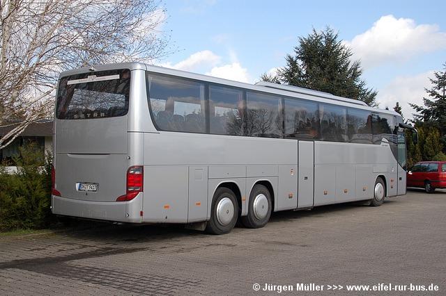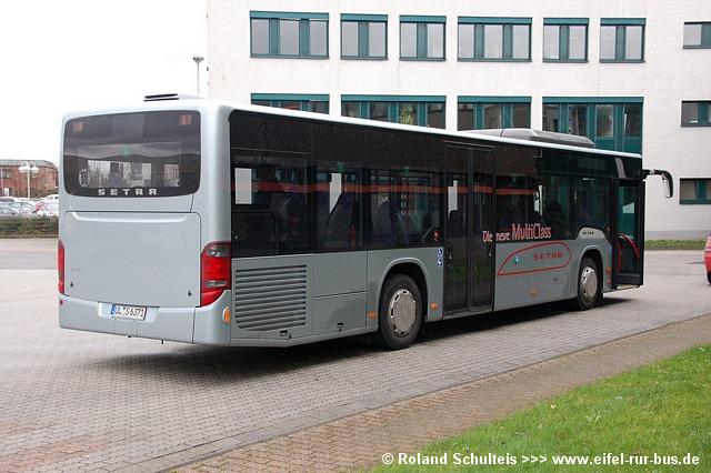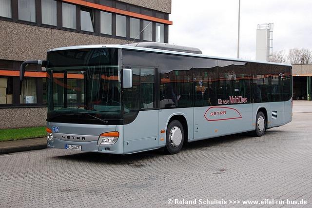 Derzeit wird der neue Setra S 415 NF durch die Setra-Vertretung Senden in Geilenkirchen mehreren Betrieben in der Umgebung vorgestellt. So konnte der Vorführwagen mit dem Kennzeichen UL-S 6371 unter anderem auch kurzzeitig bei der RVE und bei Lövenich sowie HD-Reisen und bei der west beobachtet werden. Die Fotos von Roland Schulteis zeigen das im Januar 2007 ertsmals zugelassene Fahrzeug auf dem ASEAG-Gelände während der Vorstellung bei der RVE und im Rahmen einer Probefahrt am Aachener Waldfriedhof.