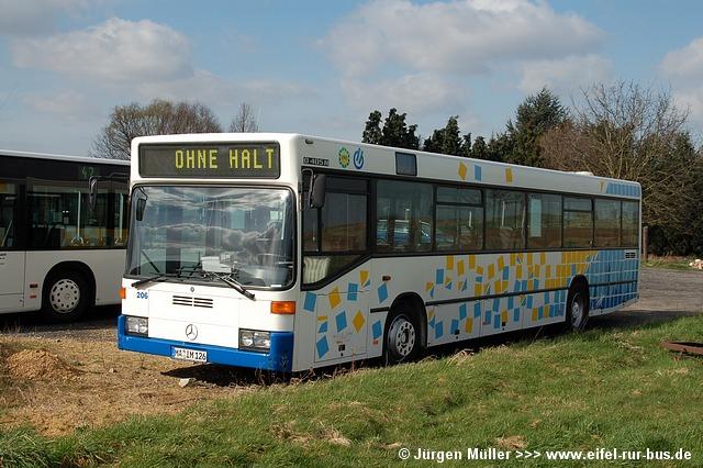 Beim Simmerather Unternehmen M&M Reisen wurde in den vergangenen Tagen ein EvoBus Citaro G Vorführwagen mit dem Kennzeichen MA-UO 298 auf der Linie SB63 zwischen Simmerath und Aachen eingesetzt. Dieser ist an die Farbgebung der Hamburger Hochbahn gehalten und mit entsprechendem Sitzpolster ausgestattet.