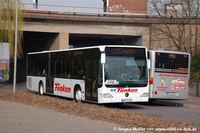 Kürzlich wurde bei Funken Reisen in Geilenkirchen ein weiterer EvoBus Citaro in den Fuhrpark eingereiht. Die Fotos zeigen den Neuzugang mit dem Kennzeichen HS-FU 50 am Bahnhof in Hückelhoven-Baal.