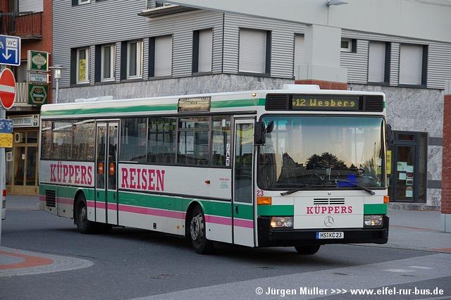 Der Mercedes-Benz O 407 mit dem Kennzeichen HS-KW 23 wurde Anfang März mit der neuen Zulassung HS-KC 23 gesichtet. Das Foto zeigt den Bus mit neuem Kennzeichen im Einsatz auf der Linie 412 am Bahnhof in Erkelenz. Weiterhin wurde Ende März der Wagen 25 von HS-KI 25 auf HS-KC 27 umgemeldet.