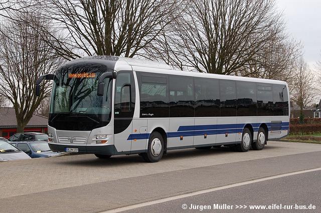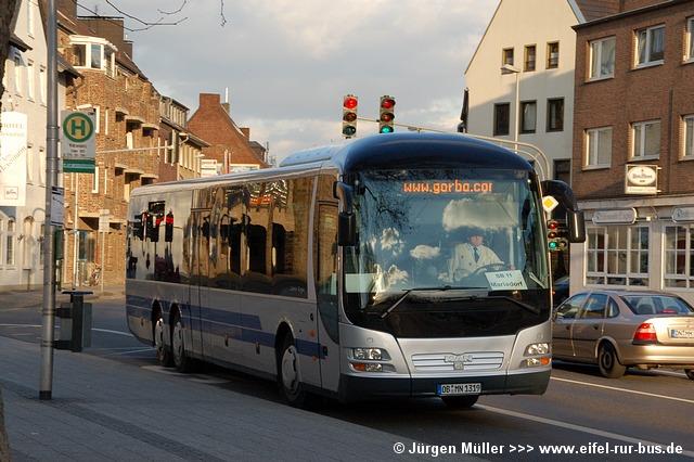 Für einige Wochen befindet sich ein dreiachsiger MAN Lion´s Regio L Leihwagen bei Koof Reisen leihweise im Einsatz. Der Bus mit dem Kennzeichen OB-MN 1319 konnte in Jülich am Walramplatz sowie an der Gesamtschule Übach-Palenberg fotografiert werden.