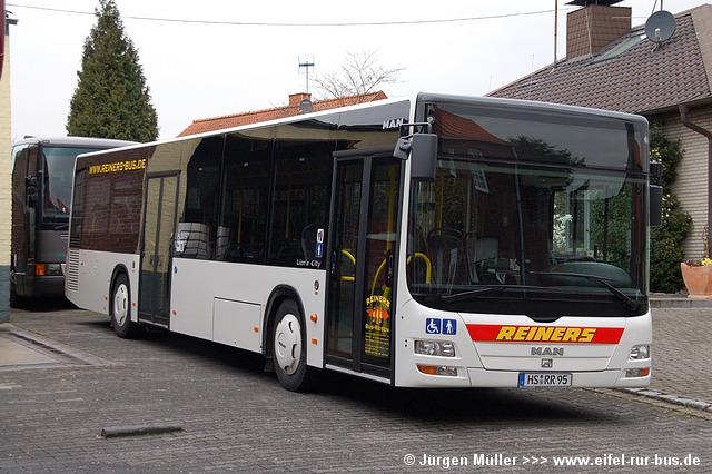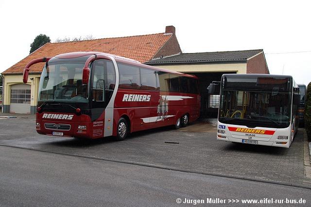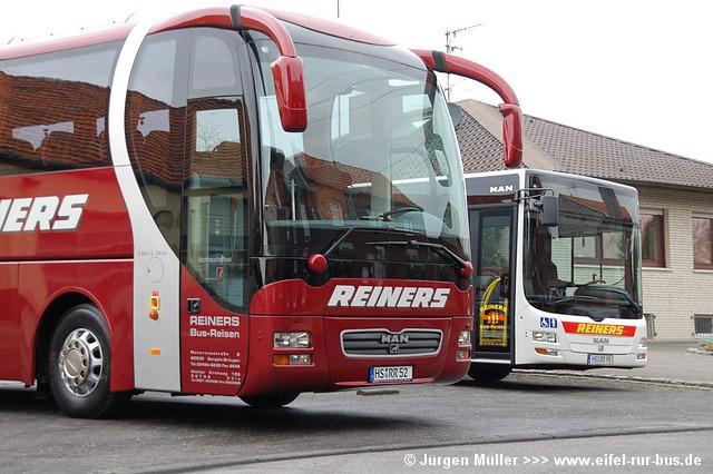 Zum Monatsende wurden bei Reiners Reisen in Gangelt zwei neue Fahrzeuge beschafft. Hierbei handelt es sich um einen MAN Lion´s City (NL 273) Linienbus und einen MAN Lion´s Top Star Reisebus. Die Fahrzeuge wurden auf HS-RR 95 und HS-RR 52 zugelassen und ersetzen den Mercedes-Benz O 405 mit dem Kennzeichen HS-BY 210 sowie den Mercedes-Benz O 404-SHD Reisebus mit dem Kennzeichen HS-KR 89. Die Fotos von Jürgen Müller zeigen die Neuzugänge am 23.03. auf dem Betriebshof in Brüxgen sowie die beiden ausgemusterten Fahrzeuge.