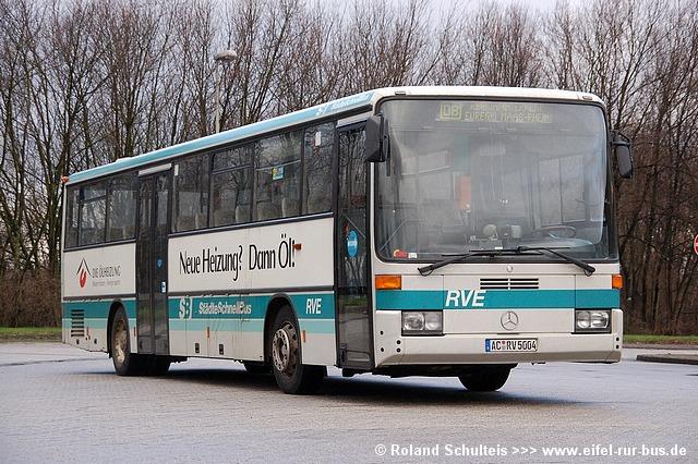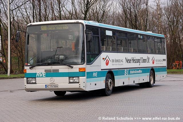 Zum Monatswechsel wurde bei der RVE der Mercedes-Benz O 408 mit dem Kennzeichen AC-RV 5004 ausgemustert. Das Fahrzeug vom Baujahr 1994 wurde vorübergehend auf der RVE-Betriebsstelle (ASEAG-ZBH) mit einem stolzen Tachostand von über 1 Million 20.000 Km abgestellt und wird demnächst zur BVR-Hauptwerkstatt nach Düsseldorf überführt werden. Mit diesem Bus verschwindet dann auch die türkisgrüne Schnellbus-Lackierung bei der RVE. Der zusätzliche belgische Fahrscheindrucker und -Entwerter für den Einsatz auf der Linie 385 (Monschau-Eupen/B) sind für den AC-RV 5104 (Setra S 215 UL) vorgesehen. Die Fotos von Roland Schulteis zeigen den Bus auf dem ASEAG-Zentralbetriebshof.