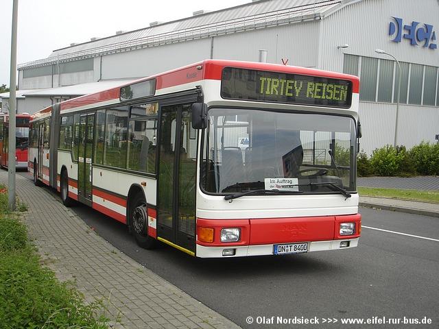 Im April gelangte als Ersatz für den ausgemusterten DN-T 895 (MAN SG 242, ex ASEAG 698) ein weiterer MAN NG 272 Gelenkbus in den Fuhrpark von Tirtey-Reisen in Titz. Wie auch der DN-T 8300 stammt dieser von den Dortmunder Stadtwerken (DSW21), wo er die Wagennummer 1682 trug. Bei Tirtey wurde der Bus auf DN-T 8400 zugelassen.