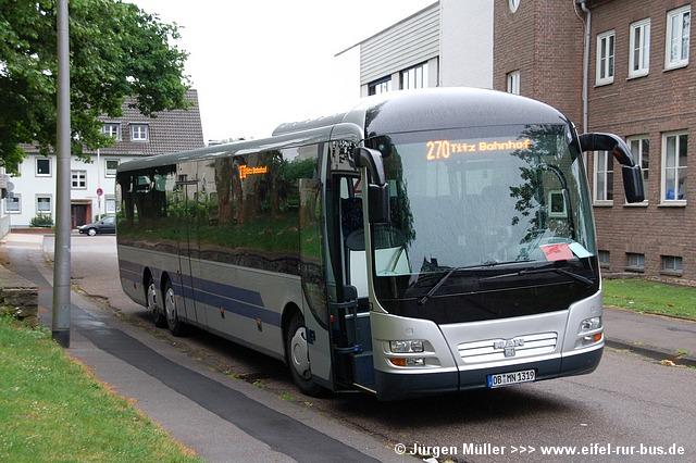 Nachdem der MAN Lion´s Regio L Vorführwagen mit dem Kennzeichen OB-MN 1319 im März bei Koof Reisen im Einsatz war, konnte der Bus im gesamten Mai nun auch als Ersatzfahrzeug für den eigenen Lion´s Regio bei Lövenich-Reisen beobachtet werden. Die Fotos zeigen den dreiachsigen Bus im Einsatz auf den Linien 270, 284 und 287.