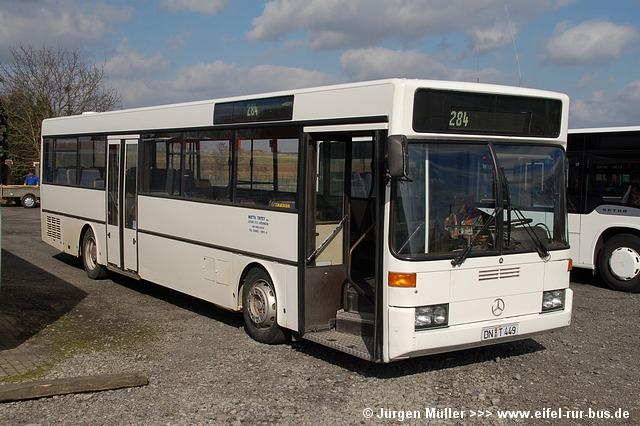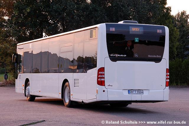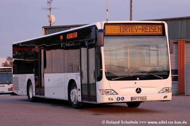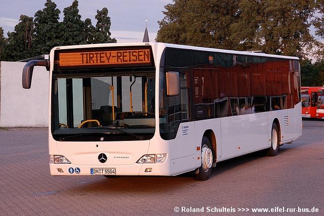 In den vergangenen Wochen gab es bei Tirtey Reisen in Titz einige Fuhrpark-veränderungen zu verzeichnen. Zum Monatsbeginn wurde ein neuer EvoBus Citaro in Dienst gestellt, der bereits die Euro-V-Norm erfüllt. Dieser wurde am 04.07.2007 auf das Kennzeichen DN-T 5504 zugelassen. Durch ein geschlossenes Filtersystem, verbunden mit der Euro-V-Norm, musste im Innenraum ein Sitzplatz im Heckbereich weichen (siehe Foto). Weiterhin wurde der seit März übergangsweise im Fuhrpark vorhande Mercedes-Benz O 405 N fest übernommen und als DN-T 9100 angemeldet. Im Gegenzug wurde der Mercedes-Benz O 405 mit dem Kennzeichen DN-T 449 abgemeldet.