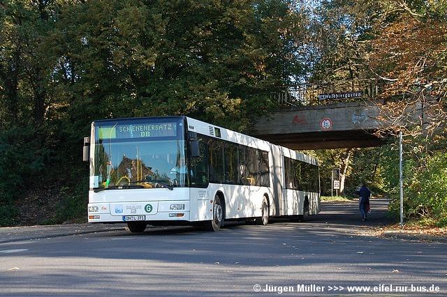 Am Sonntag, den 14.10.2007 fand auf der Schienenstrecke Köln-Euskirchen-Trier ein Schienenersatzverkehr zwischen Hürth-Kalscheuren und Erftstadt mit Zwischenhalt in Brühl-Kierberg statt. Zum Einsatz kamen acht Fahrzeuge der Firma Lövenich-Reisen aus Niederzier im RVE-Auftrag für die Deutsche Bahn AG. Die Fotos von Jürgen Müller zeigen die Busse an den drei Bahnhöfen sowie entlang der Strecke in Hürth-Fischenich: