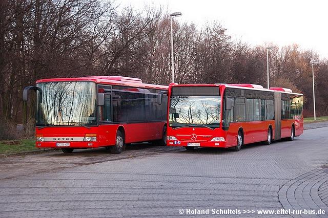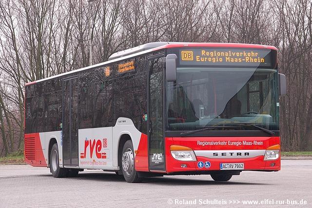 In den letzten Wochen wurden die vier Neufahrzeuge vom Typ Setra S 415 NF in Betrieb genommen und unter AC-RV 7001 bis 7004 eingereiht. Die Fotos von Roland Schulteis zeigen die Busse 7001, 7002 und 7004 auf den Einsatzstellen Aachen und Simmerath: