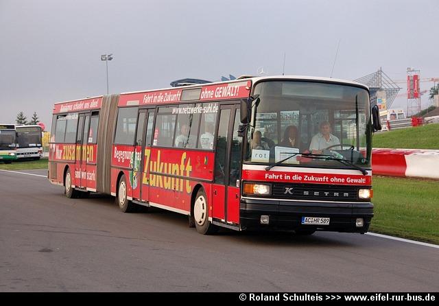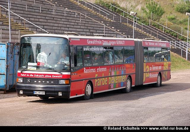 Beim Eifeler Unternehmen Rüssel-Reisen wurde kürzlich ein gebrauchter Gelenkbus in den Fuhrpark eingereiht. Der Setra SG 219 SL stammt ursprünglich von der Städtischen Nahverkehrsgesellschaft (SNG) in Suhl/Zella-Mehlis (Wagen 69) und trägt nun das Kennzeichen AC-HR 589: