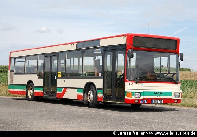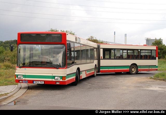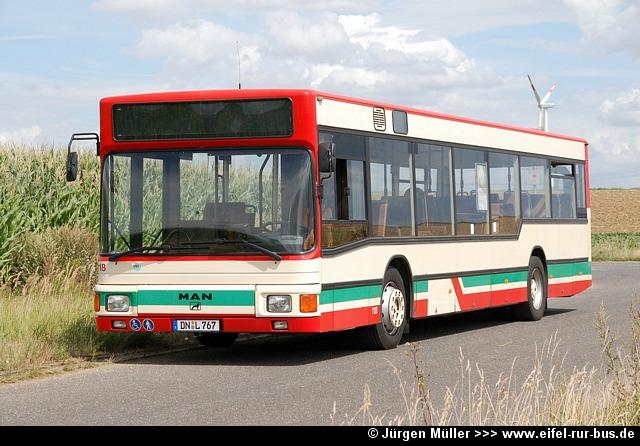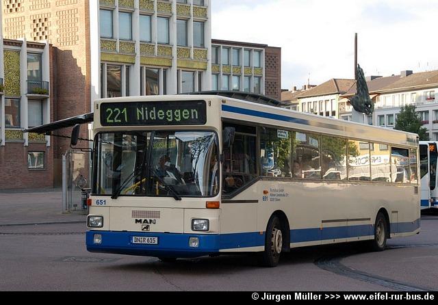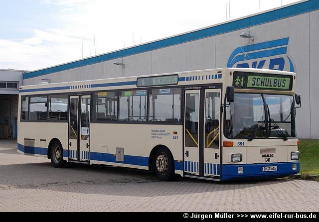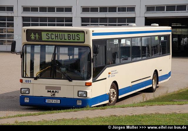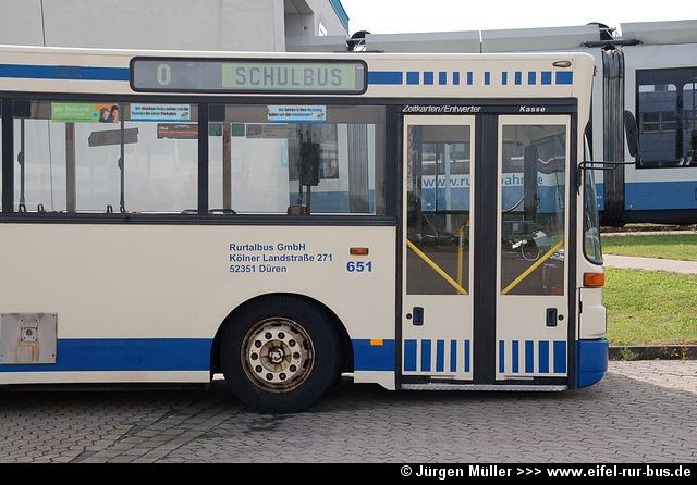 Der im Frühjahr bei der Dürener Kreisbahn ausgemusterte Wagen 63 (MAN SL 202) wurde nun von der Rurtalbus GmbH übernommen und wird unter DN-R 615 im Auftrag der DKB eingesetzt. Der Bus trägt hier die Wagennummer 651: