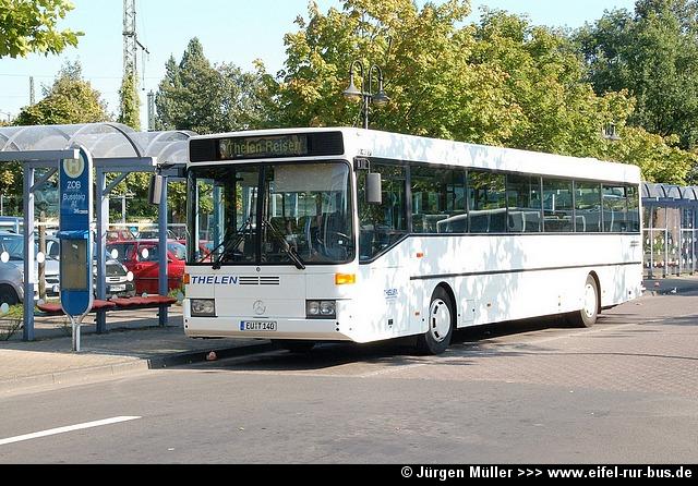 Bei Thelen Reisen in Zülpich kommt seit kurzem ein weißer Mercedes-Benz O 407 zum Einsatz. Dieser trägt das Kennzeichen EU-T 140 und stammt von der ORP Kyritz: