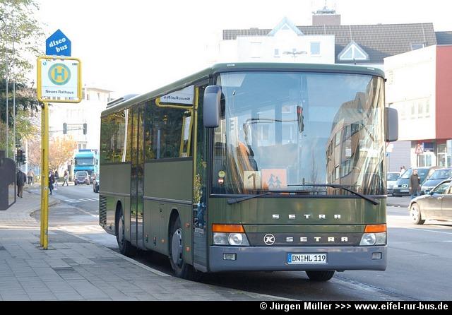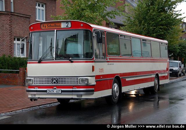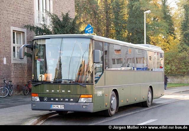 Der seit Jahren beständige Fuhrpark der Firma Labudda Reisen aus Aldenhoven wurde durch einen Neuzugang verändert. Dabei handelt es sich um einen Setra S 313 UL , der die Zulassung DN-HL 119 erhielt. Ursprünglich stammt der Bus von der Bundeswehr, wie die olivgrüne Fargbebung verrät. Der Kässbohrer Setra S 140 ES mit dem Kennzeichen DN-K 407 wurde zwischenzeitlich zum Verkauf angeboten:
