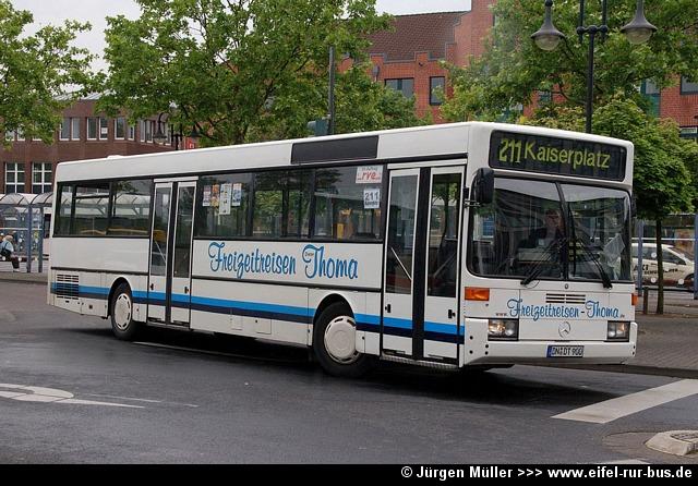 Bei Thoma Reisen in Langerwehe wurde ein Neoplan N 4016 beschafft und unter DN-DT 900 zugelassen. Die Bilder zeigen den Bus im Schülerverkehr Jülich sowie den Mercedes-Benz O 405 mit gleicher Zulassung, der im Gegenzug ausgemustert wurde. Auf dem Foto von Ulrich Bohnen ist der Neoplan in seinem bisherigen Einsatzgebiet bei den Stadtwerken Gütersloh (Wagen 20, GT-TW 20) zu sehen: