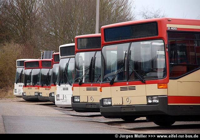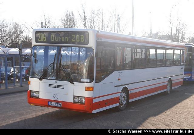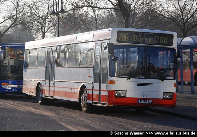Bei Rüssel-Reisen, Stolberg ist zum Jahresende mindestens ein Mercedes-Benz O 405 bislang noch unbekannter Herkunft aufgetaucht. Die Fotos von Sascha Wassen zeigen den Bus mit dem Kennzeichen AC-HR 574 am Dürener ZOB. Ausgemustert wurde der Mercedes-Benz O 307 mit dem Kennzeichen AC-HR 583.
