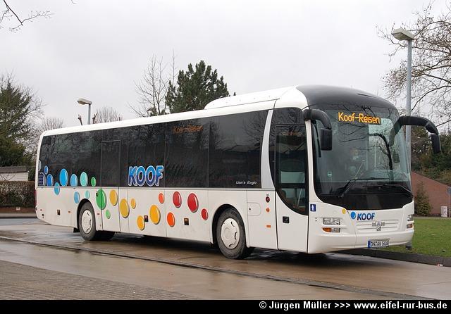 Kürzlich wurden bei Koof Reisen in Linnich zwei weitere MAN Lion´s City (NL 273) sowie ein weiterer MAN Lion´s Regio (ÜL 314) neu beschafft. Die beiden Linienbusse erhielten die Zulassungen DN-AK 34 und DN-AK 97, während der Überlandbus das Kennzeichen DN-AK 508 trägt. Eventuelle Ausmusterungen sind bisher nicht bekannt.