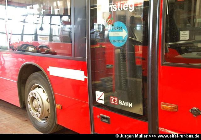 Am 07.03.2009 wurde bei der RVE in Aachen eine Vielzahl der neu lackierten Busse mit den Logos und Schriftzügen der DB-Stadtverkehr NRW versehen. Die Aufnahmen enstanden während der Beklebung und zeigen stellvertretend den neuen Wagen 8100 kurz nach Vervollständigung der CI: