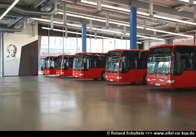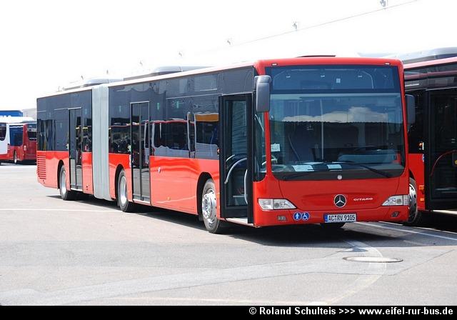 Im Rahmen der Fahrzeugneubeschaffung der DB Stadtverkehr gelangten fünf neue Gelenkbusse in den Fuhrpark der RVE. Die EvoBus O 530 G (Citaro II) wurden unter AC-RV 9101 bis 9105 in den Fuhrpark eingereiht. Die Fotos von Roland Schulteis enstanden im EvoBus-Werk in Mannheim bei der Fahrzeugübergabe: