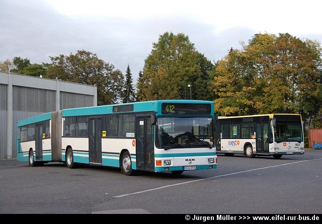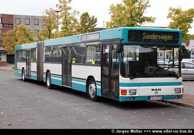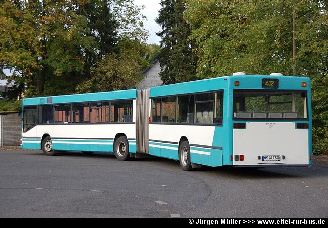 Beim Waldfeuchter Unternehmen Höninger wurde kürzlich ein Gelenkbus beschafft. Der auf HS-J 2730 zugelassene MAN NG 272 trägt noch die Originallackierung seines Vorbesitzers, der RSVG Troisdorf (Wagen 2052):