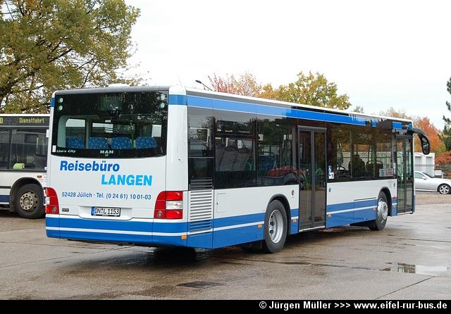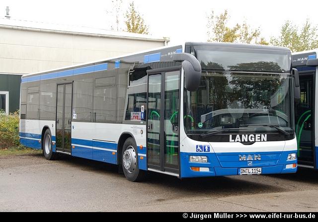 Das zum Jahresbeginn in die Jülicher Firma Langen aufgegangene Unternehmen Lövenich-Reisen hat im Oktober vier neue MAN NL 273 (Lion´s City) erhalten. Die in Langen-Farbgebung gehaltenen Fahrzeuge erhielten die Kennzeichen DN-L 1151 bis DN-L 1154. Unter DN-L 1155 wurde zusätzlich ein gebrauchter Gelenkbus angemeldet, der ursprünglich bei der CVAG Chemnitz als Wagen 474 im Einsatz war: