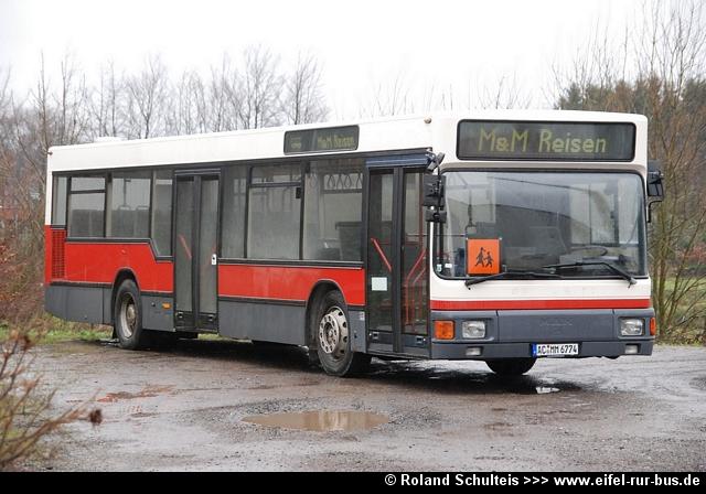 Seit der letzten Meldung haben sich im Fuhrpark von M&M-Reisen weitere Veränderungen ergeben. Vom Österreicher Unternehmen Dr.Richard ("Wiener Linien") wurden drei MAN NL 202 übernommen, die die Zulassungen AC-MM 6774, 6777 und 6778 erhielten. Ausgemustert wurden die Fahrzeuge AC-MM 6770 (MAN NL 202) und AC-MM 6771 (MB Sprinter), wobei diese Zulassungen bereits wieder neu vergeben wurden: