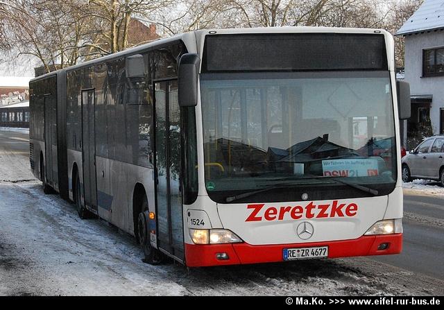 Der Ende 2008 nach einem Brandschaden ausgemusterte Wagen 155 der Dürener Kreisbahn (EvoBus O 530 G) fährt nun bei der Firma Zeretzke-Reisen in Castrop-Rauxel und hat dort die Zulassung RE-ZR 4677 erhalten: