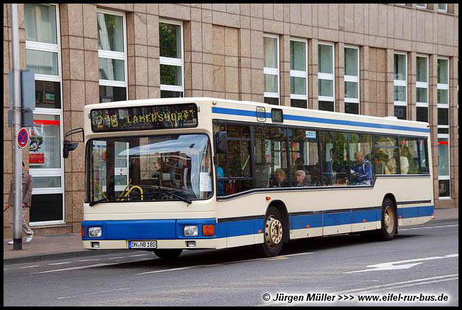 Die kürzlich bei der DKB ausgemusterten MAN NL 202 mit den Wagennummern 69 und 82 stehen inzwischen bei Subunternehmern im weiteren Einsatz. Während der KOM 69 nun bei Berendes in Vettweiß als DN-PU 104 fährt, gelangte der KOM 82 zu Breuer in Düren, wo er auf DN-NB 180 umgemeldet wurde: