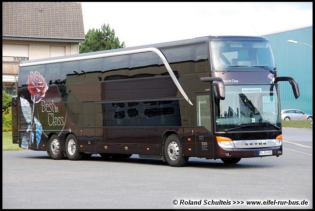 Das auf EBR EuropaBusReisen umfirmierte Unternehmen mit Sitz in Simmerath hat mittlerweile zwei Reisebusse aus dem Hause Setra im Fuhrpark. Der neue Doppeldecker Setra S 431 DT wurde zum Jahresende 2010 neu beschafft und erhielt die Zulassung AC-CK 4001, während der gebraucht beschaffte Setra S 417 HDH unter AC-CK 4002 zugelassen wurde.