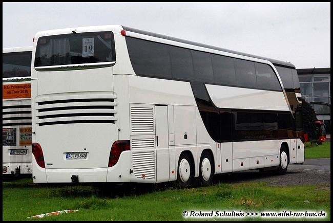 Auch bei Eifelgold-Reisen in Simmerath wurde ein neuer Doppeldecker-Reisebus gesichtet. Der Setra S 431 DT erhielt bereits Ende Juni die Zulassung AC-WO 840: