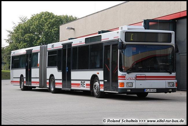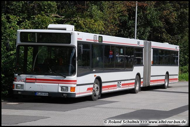 Für eine zusätzliche Fahrleistung in der Nordeifel wurde zum Schulbeginn kurzfristig ein weiterer Gelenkbus benötigt. Durch Fahrzeugüberhang bei der BVO in Bielefeld gelangte so der MAN NG 312 mit der Zulassung BI-NV 558 zur RVE nach Aachen. Nach Ummeldung auf AC-RV 4016 wurden auch die Firmenlogos abgeändert: