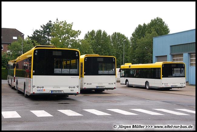 Wie auch in den Vorjahren erfolgte die diesjährige Fahrzeugneubeschaffung der WestEnergie und Verkehr GmbH im Rahmen der Ausschreibungsgemeinschaft Mittlerer Niederrhein in Zusammenarbeit mit vier weiteren Verkehrsbetrieben. In diesem Jahr stammen sämtliche (Diesel-)Neufahrzeuge aller Betriebe vom polnischen Hersteller Solaris, der bei der west bereits im vergangenen Jahr Einzug gehalten hat. Die Lieferung umfasst zwei Solo- und drei Gelenkfahrzeuge vomTyp "Urbino":